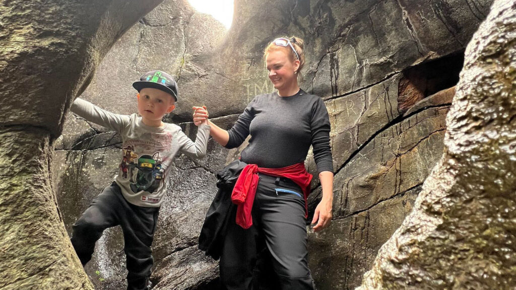 Stor stas. Sander Austvik og mamma Lena Austvik måtte inn i jettegryten og se på dragens reir.
