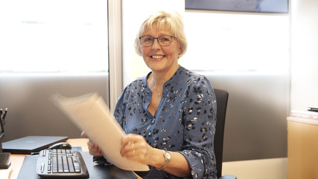 – På Skrivestua skrev vi brev, tok imot telefoner – ja, typiske sekretæroppgaver. Bare noen måneder senere ble jeg flyttet til Ekspedisjonen. Der tok vi imot kunder og spørsmål på telefon, administrerte medlemskap – og det var der vi drev med boligformidling, det som senere ble jobben min, forteller hun.